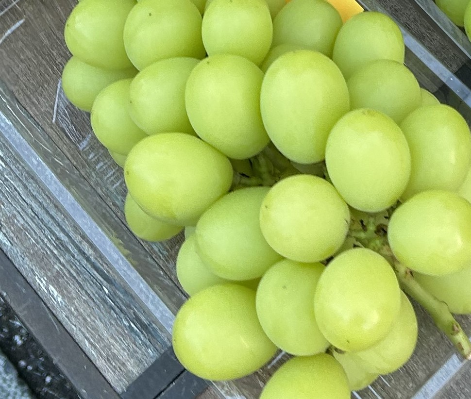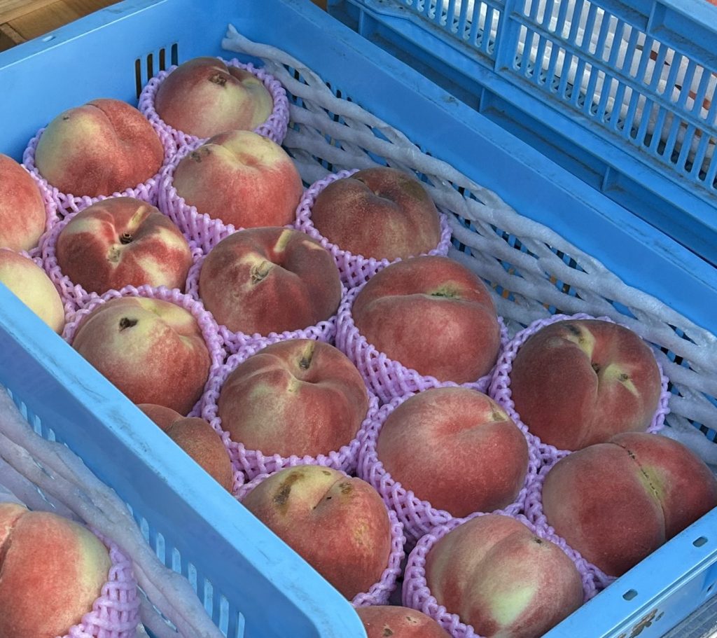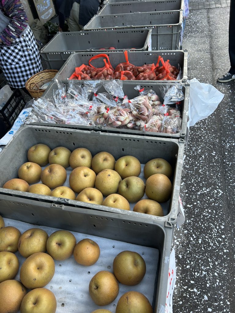 本日の朝市は秋の味覚の梨や桃、シャインマスカットやナガノパープル等のぶどう、栗が大好評でした