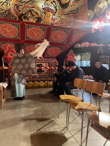 2026年1月2日 お知らせ 弘前神明宮の宮司さんによるお祓い 津軽藩ねぷた村、新年の恒例行事です。お客様に安全安心に楽しく過ごしてもらえるように、お祓いをしてもらいました。寛永4年(1627年)弘前市城北に建立された由緒ある神社、弘前神明宮に毎年お祓いをしていただいております。お正月も元気に営業中!皆様のご来村を心よりお待ちしております。